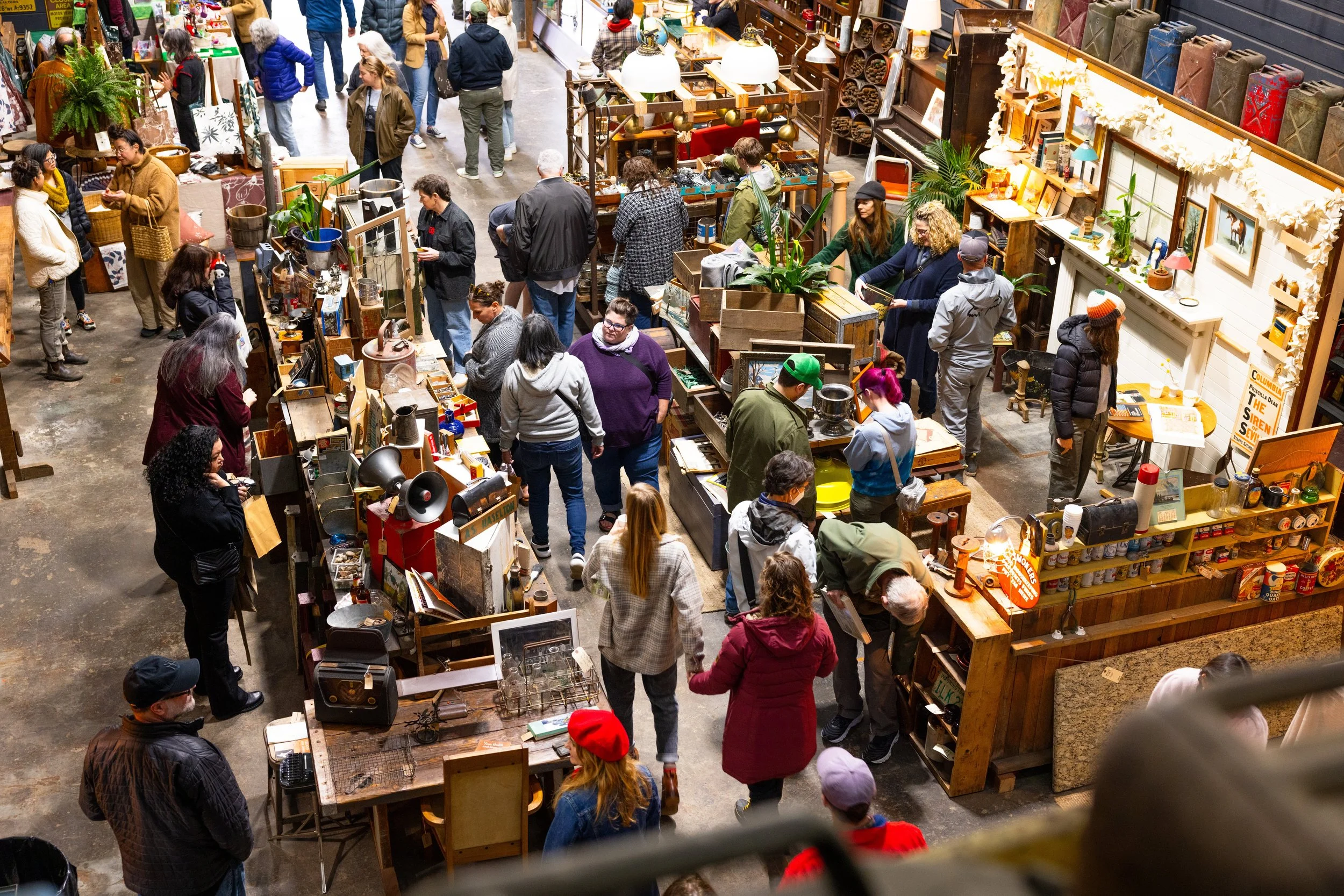 Portland Flea is a monthly market featuring a curated lineup of 100+ vendors offering vintage, clothing, accessories, and home goods.